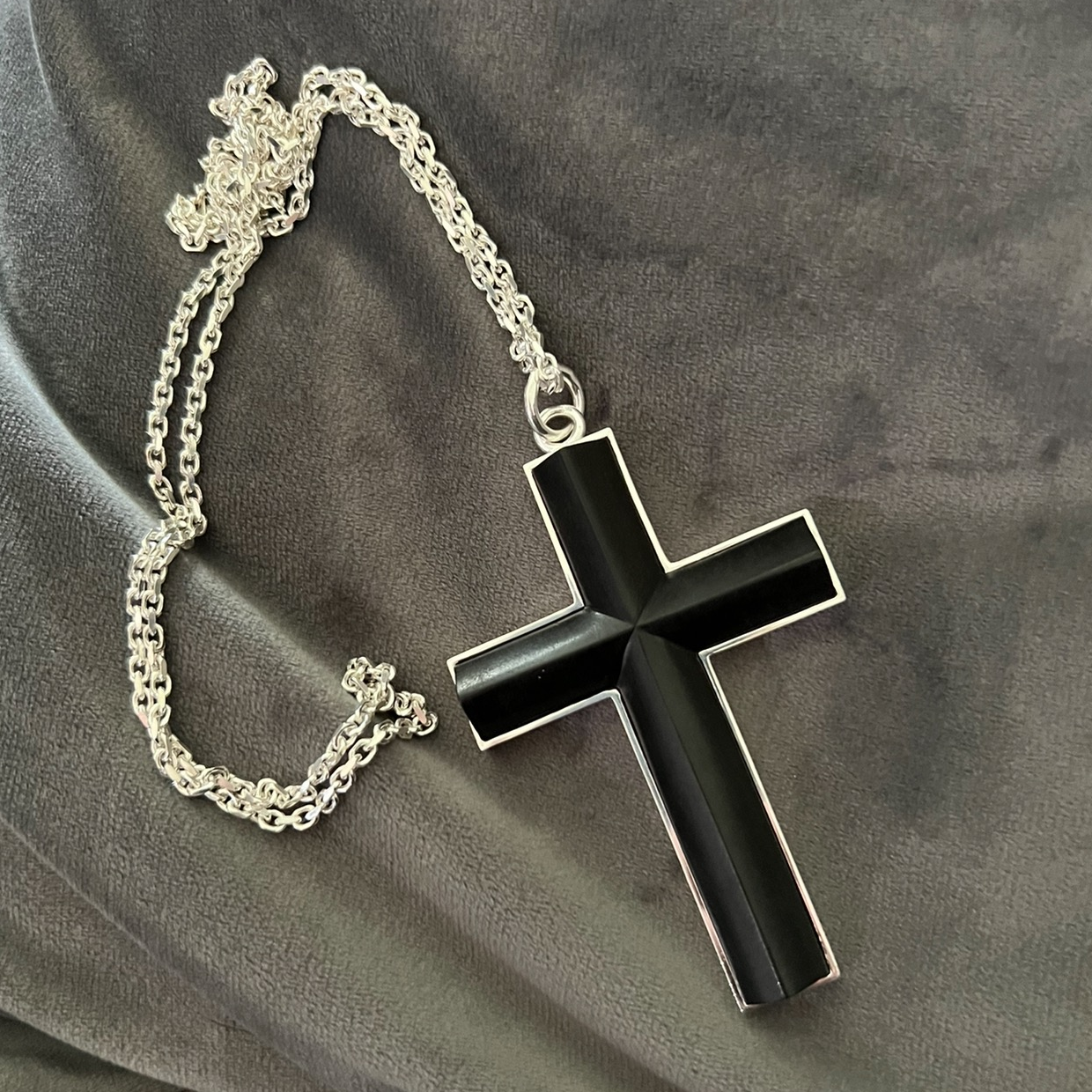 Ett stort kors i silver med ebenholts, en specialbeställning.